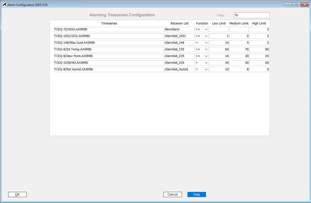 Select a receiver list. These lists are used in the KISTERS AlarmManager (KiALM to send alarms to certain receivers by e.g. email. This list is transferred to the KISTERS AlarmManager (KiALM) together with the alarm data in XML format. |